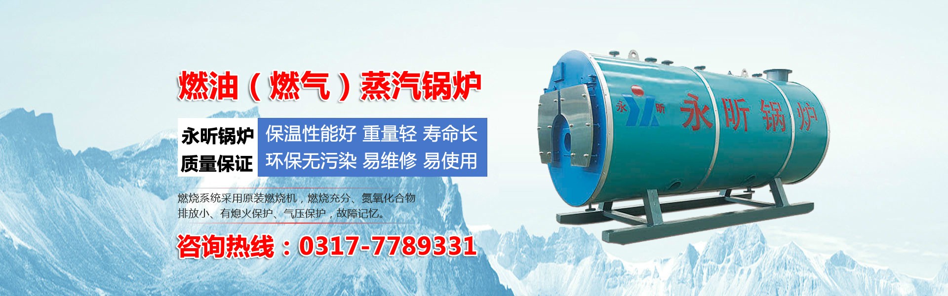 “永昕”牌鍋爐產品已涵蓋各種燃生物質、燃油(氣)、燃水煤漿、燃煤粉、電加熱等各種快裝式、組裝式、散裝式蒸汽鍋爐、熱水鍋爐、有機熱載體鍋爐、鍋爐改造、余熱鍋爐。新型環(huán)保節(jié)能產品:冷凝蒸汽鍋爐、真空熱水鍋爐、低氮鍋爐、熱風型導熱油爐。LNG低溫設備、LNG加氣站、一二三類壓力容器等產品。 產品廣泛用于發(fā)電、供熱、紡織、印染、筑路、瀝青拌合、木料、化工等諸多行業(yè)。